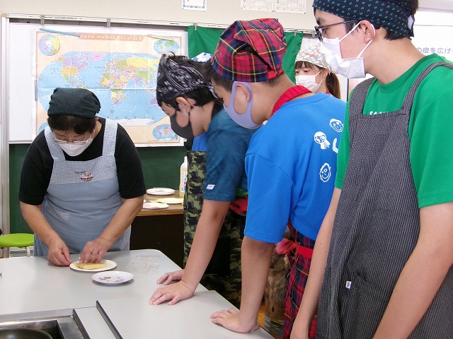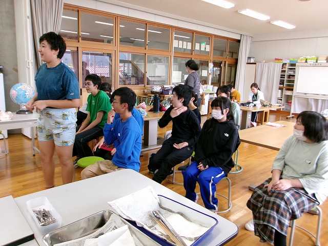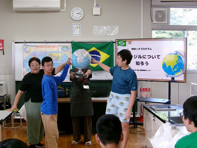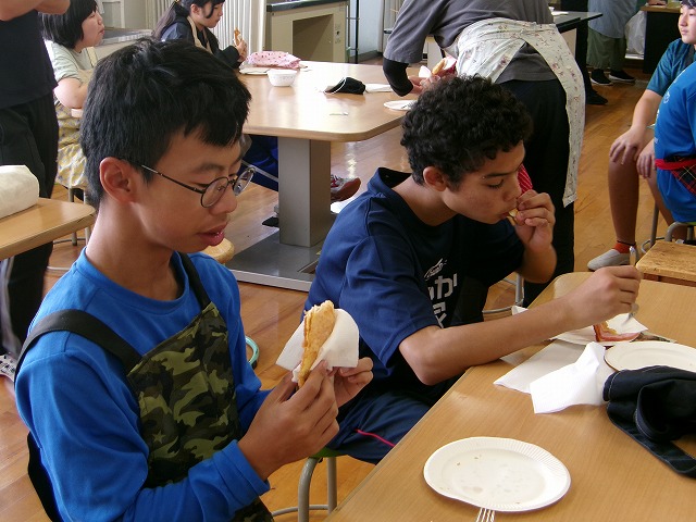 調理後は、ブラジルの地理や文化について教えていただきました。移民として移り住んだたくさんの日本の方がおられ、100年ほど前は、船で2か月かけてブラジルに移り住んだことも教えていただきました。そういった歴史の中で、ブラジルにはたくさん日本の人や文化が伝わっていることも教えていただきました。生徒たちにっては、地球の反対側にある遠い国ですが、少し身近に感じたようでした🌎