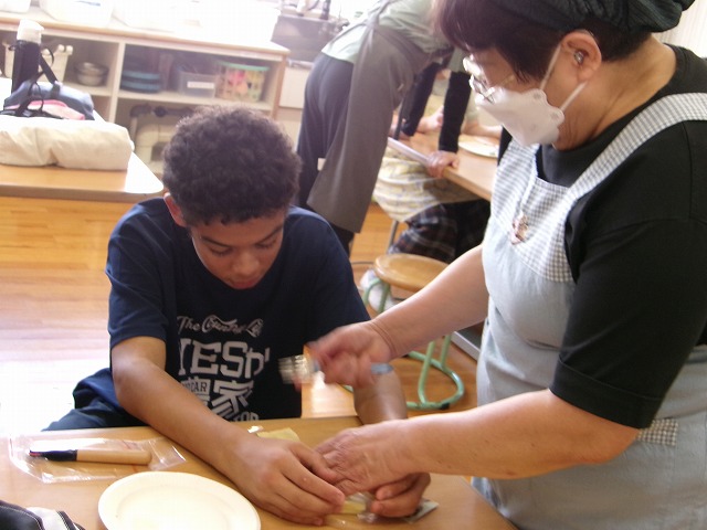 10月14日、中学部では、市教育委員会の事業、国際理解プログラムを活用して、ブラジルのことを教えていただきました。講師に、いつも学校で翻訳筆記としてお世話になっている職員さんと篠山国際理解センターの職員さんにお世話になりました。学習では、まず、ブラジルの庶民的な軽食として食べられているパステル(ポルトガル語: pastel、パステウとも)を調理していただきました。パステルは、小麦粉を練って作った薄い生地を小さく切り、具を包んだものを揚げたり、茹でたり、オーブンで焼いたりした料理です。今回は、チーズやトマトソースなどを包み、揚げていただきました。とってもおいしくおやつ感覚でいただきました。