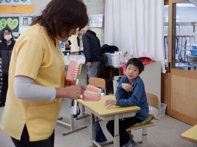 11月26日に、歯科衛生士の方をお招きし、小学部の一部の児童と中学部の生徒を対象に指導指導をしていただきました。衛生士さんから歯磨きのポイントを教えていただき、模型を使ったり、実際に磨いたりして練習しました。みんな真剣な顔で磨いていました。これからも教えていただいたことを実践できるようにがんばります。3学期に高等部3年にも実施していただきます。