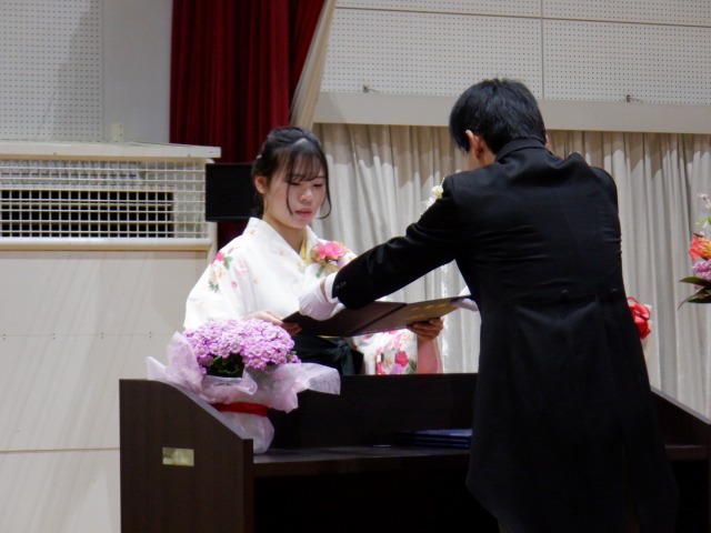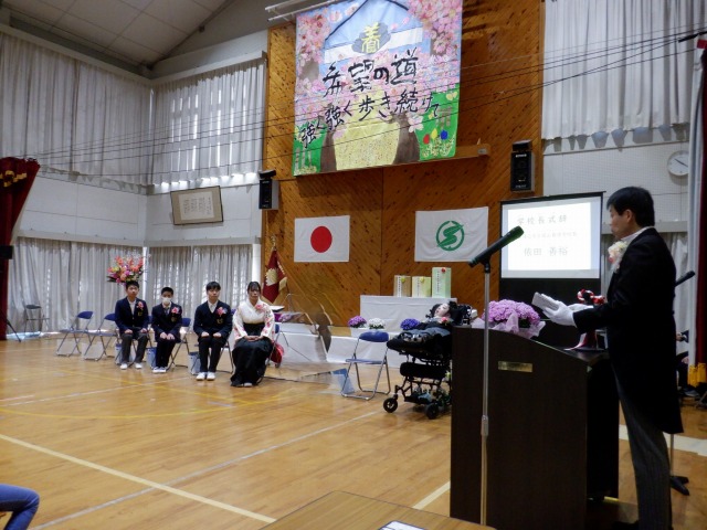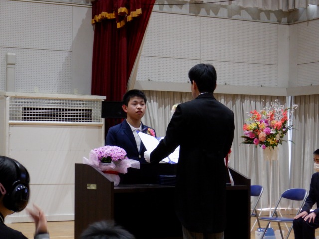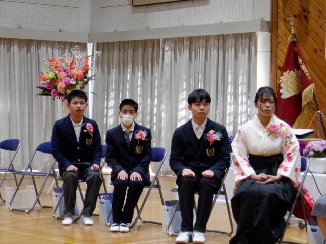 3月5日、高等部第29回卒業証書授与式を行いました。教育委員様、副市長様、市議会議員様をはじめ学校運営協議会のみなさまを来賓に迎え、保護者、在校生に見送られ9名が巣立っていきました。
