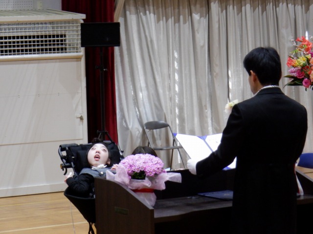 在籍は、3年から長い生徒は13年間と篠山養護学校で学んだ生徒もいました。長短はありますが、保護者のみなさまや教職員をはじめ、友だちや看護師さん、バスの運転手さんや添乗員さん、実習先の事業所や企業のみなさん、放課後等デイサービス等の事業所のみなさんなどたくさんの方に温かく見守っていただいたおかげで、無事卒業することができました。ありがとうございました。式では、卒業生一人一人が思い出やこれから頑張りたいこと、感謝の言葉を述べました。卒業生の中には、3月から就労や生活介護施設でお世話になります。新たな場所でも自分らしくがんばってほしいと思います。これからもどうぞあたたかく卒業生を見守っていただけるとありがたいです。