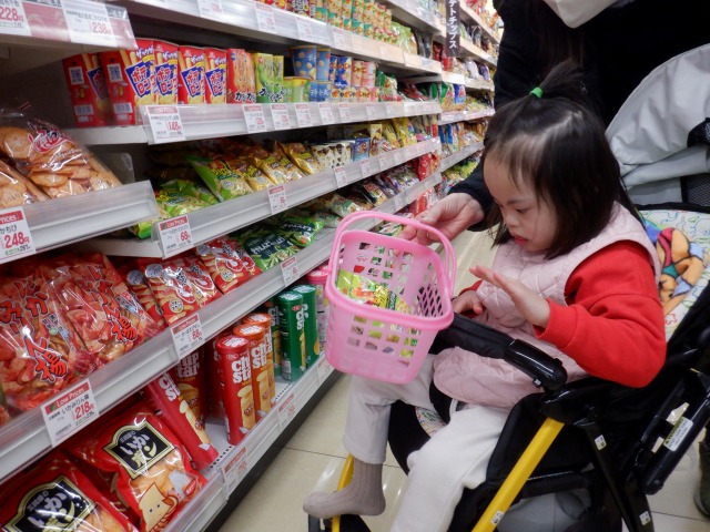 3月6日、早期発達支援室の子どもたちが、買い物体験に行ってきました。早期発達支援室のある、学校から歩いてスーパーマーケットに行きました。約15分間ほどですが、子どもたちにとっては初めての道路や体験で、心配していましたが、頑張ることができました。買い物では、自分の興味のあるお菓子や食べ物をかごに入れたり、お金を払ったりするなど体験ができました。この1年間の成長を感じた活動でした。