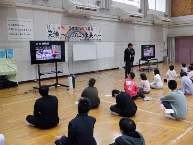 12月24日、2学期終業式を行いました。終業式では、学校長より2学期の振り返りを行いました。修学旅行や自然体験活動、高等部の後期現場施設実習などそれぞれの学部で貴重な体験や学習ができたことを振り返りました。また、来年度より校名が変更されることが決定されたことについても話がありました。最後に、冬休みに入るということで、3つの約束を話しました。それは、「規則正しい生活」「約束やルールを守る」「目標やめあてを持つ」の3つです。年末年始を楽しく有意義に過ごしてほしいと思います。